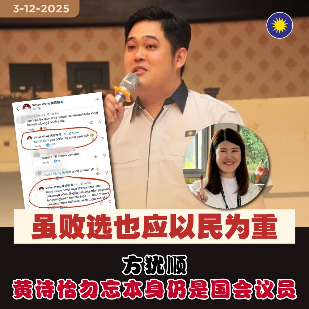 虽败选也应以民为重,方犹顺:黄诗怡勿忘本身仍是国会议...