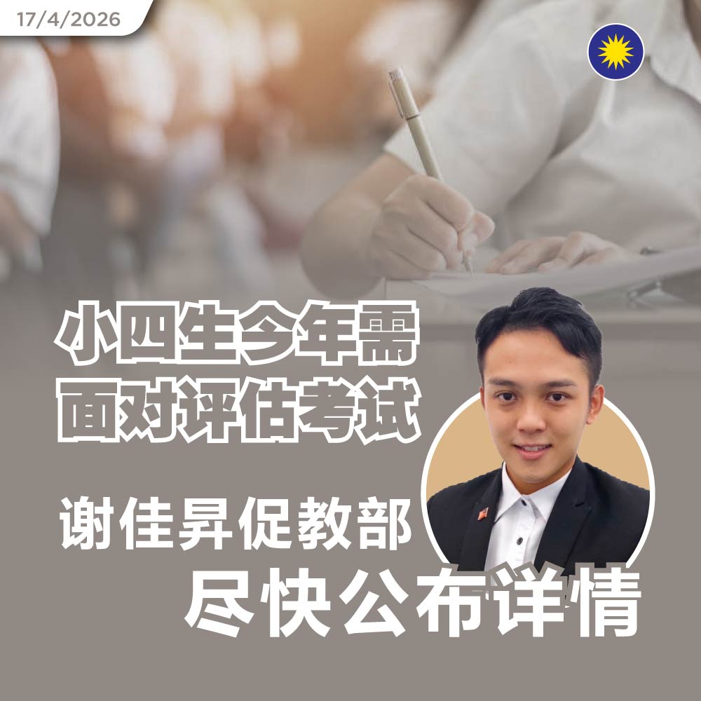 小四生今年需面对评估考试,谢佳昇促教部尽快公布详情...