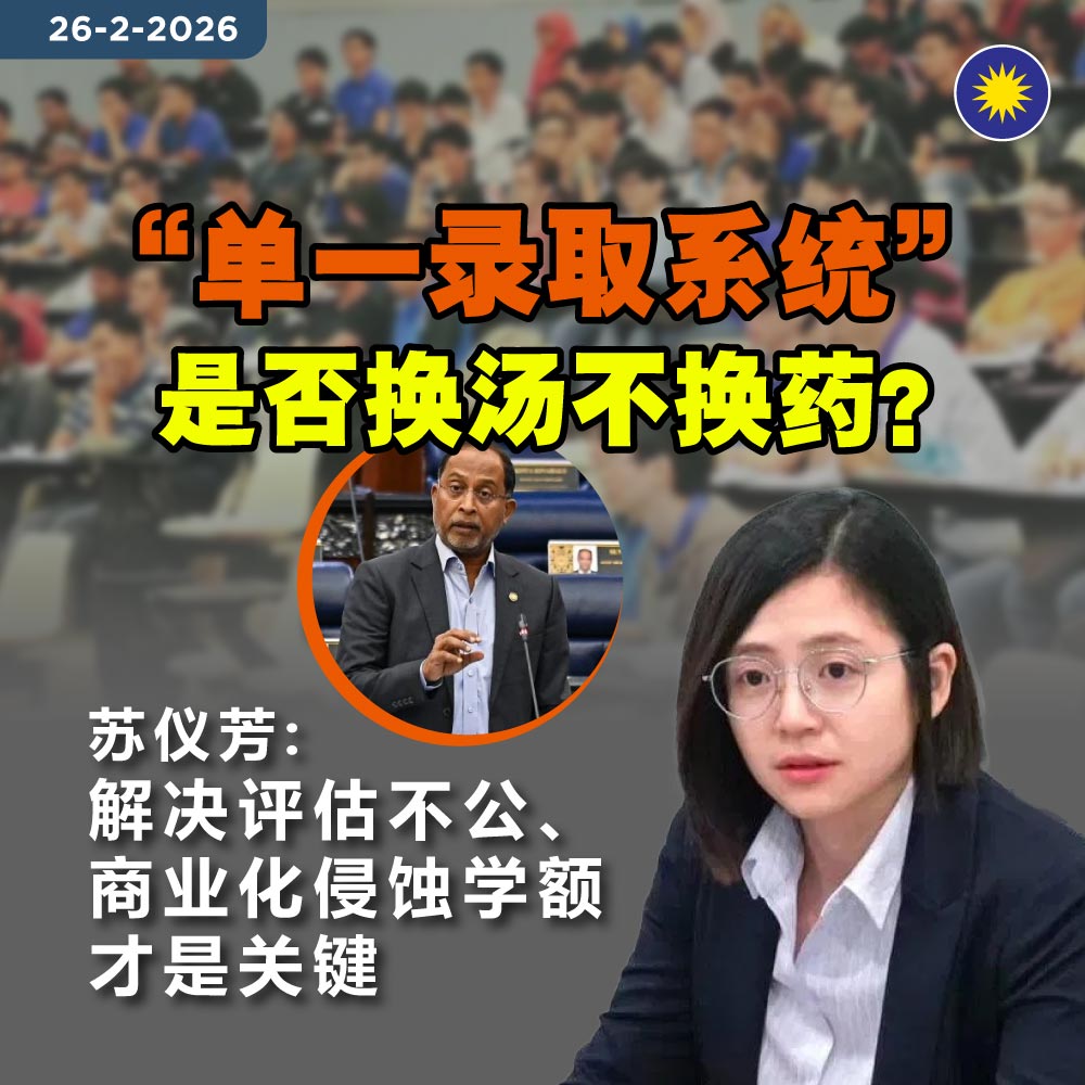 “单一录取系统”是否换汤不换药?苏仪芳:解决评估不公...