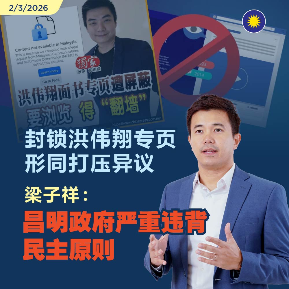 封锁洪伟翔专页形同打压异议,梁子祥:昌明政府严重违背...