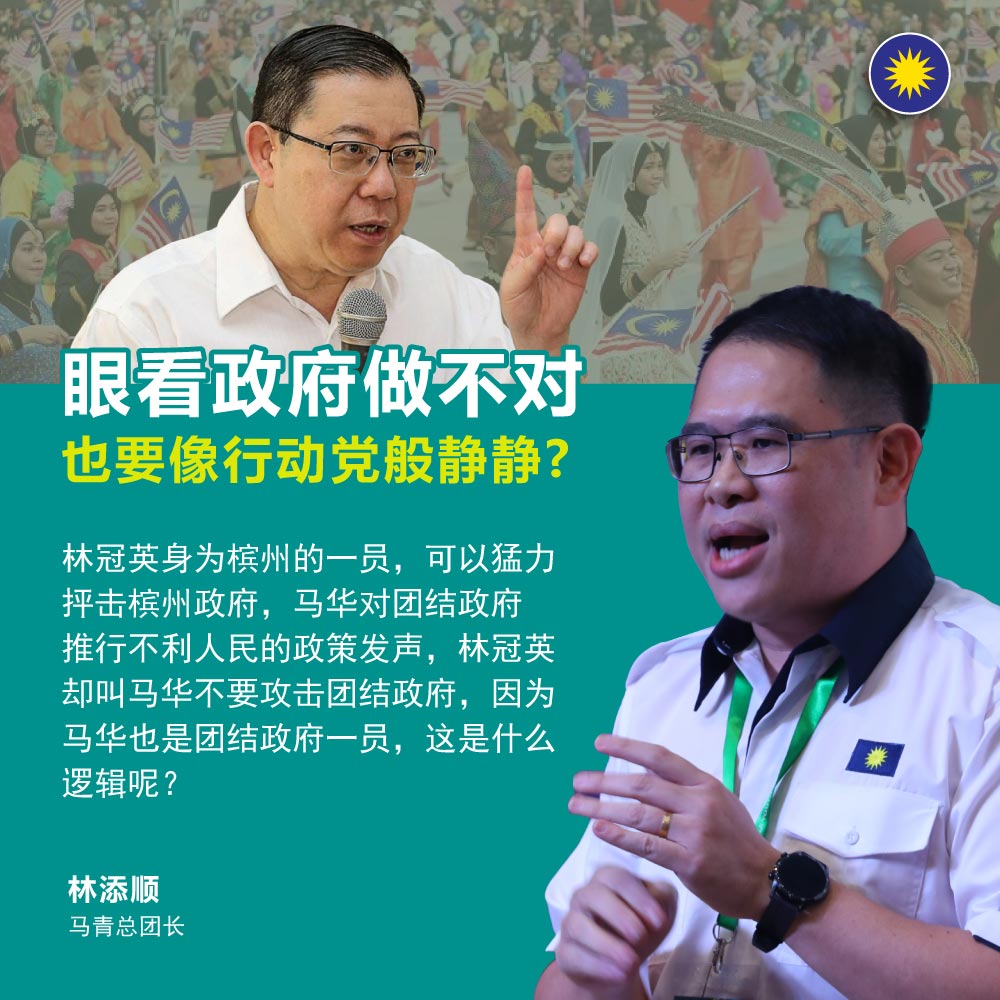 马青总团长林添顺说,尽管马华是团结政府一员,若政府落实不利人民的政策仍会毫不犹豫的做出批评和提供建设性意见,这如同行动党主席林冠英也是槟州政府一员,仍会火力全开抨击槟州政府一样。