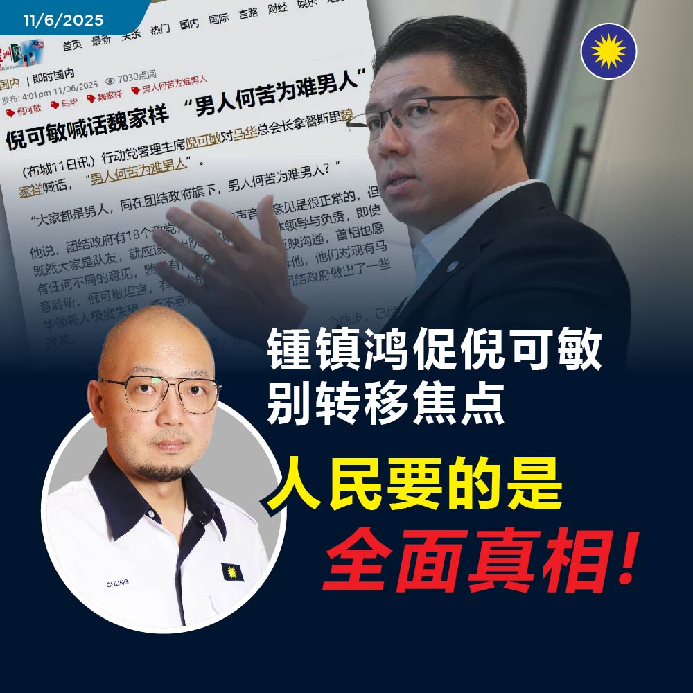 至于倪可敏声称“男人何苦为难男人”,锺镇鸿驳斥道:“身为部长,不该用性别感性喊话来逃避责任,人民不是要看兄弟情,而是要看你如何交代数千万甚至上亿令吉的公共资源分配。”