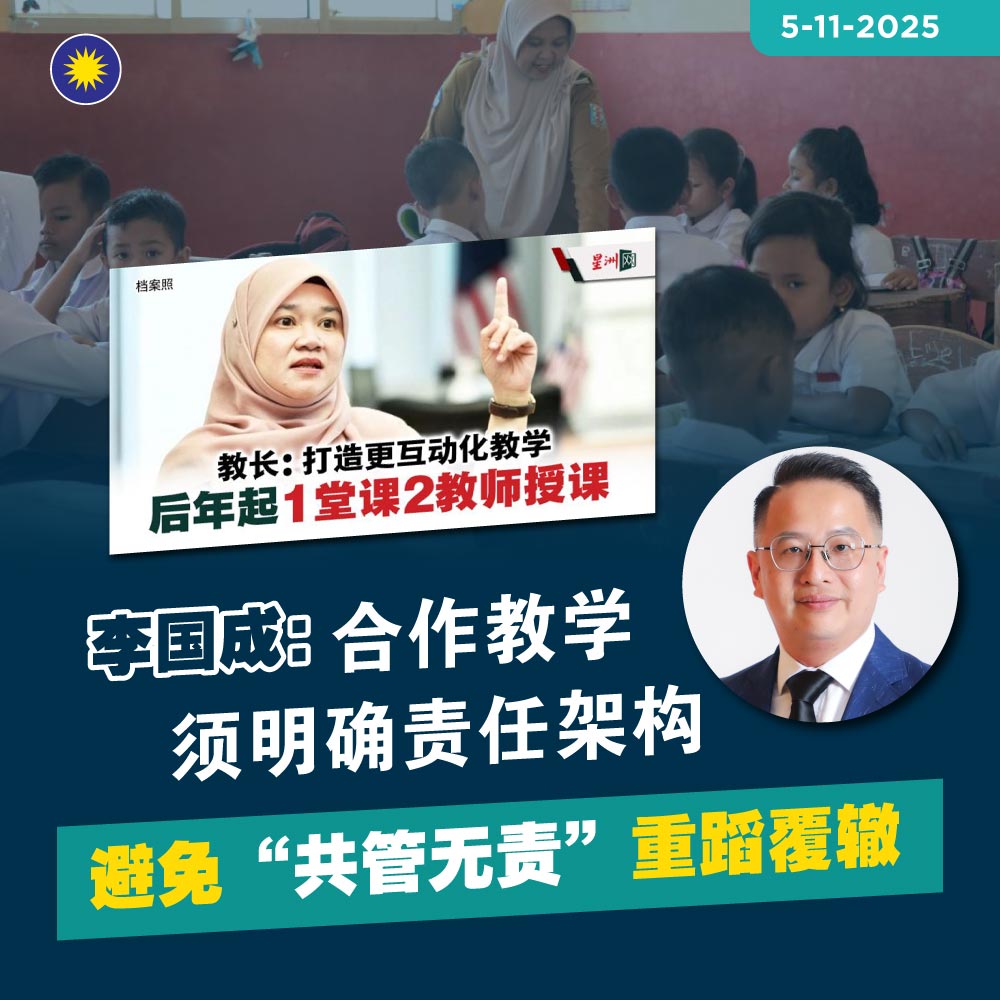 马青中委兼雪兰莪州马青署理团长李国成表示,教育部长法丽娜宣布将在2027学年推行“合作教学”(Co-Teaching)制度的构想,虽然出发点良好,但在执行层面上若缺乏清晰的权责划分,恐怕将令原本复杂的教学体系陷入新的混乱。